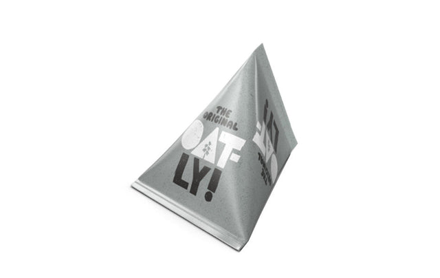 One hundred pyramid-shaped single-serve oat drinks allow each guest to have their own perfect-sized portion without sharing the package with others. They come in a box that also serves as a product display.