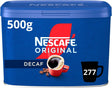 Resealable 500g tin of Nescafe Original Decaffeinated instant coffee.