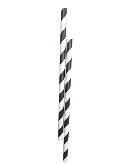 Biodegradable Black & White Paper Straws 8inch - 6mm Diameter (Pack of 250)