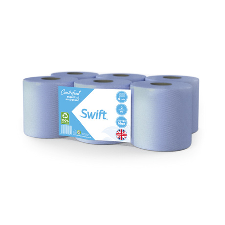 Swift Blue Economy Embossed 2 Ply Essential Centrefeed Paper Rolls Blue (Pack of 6)