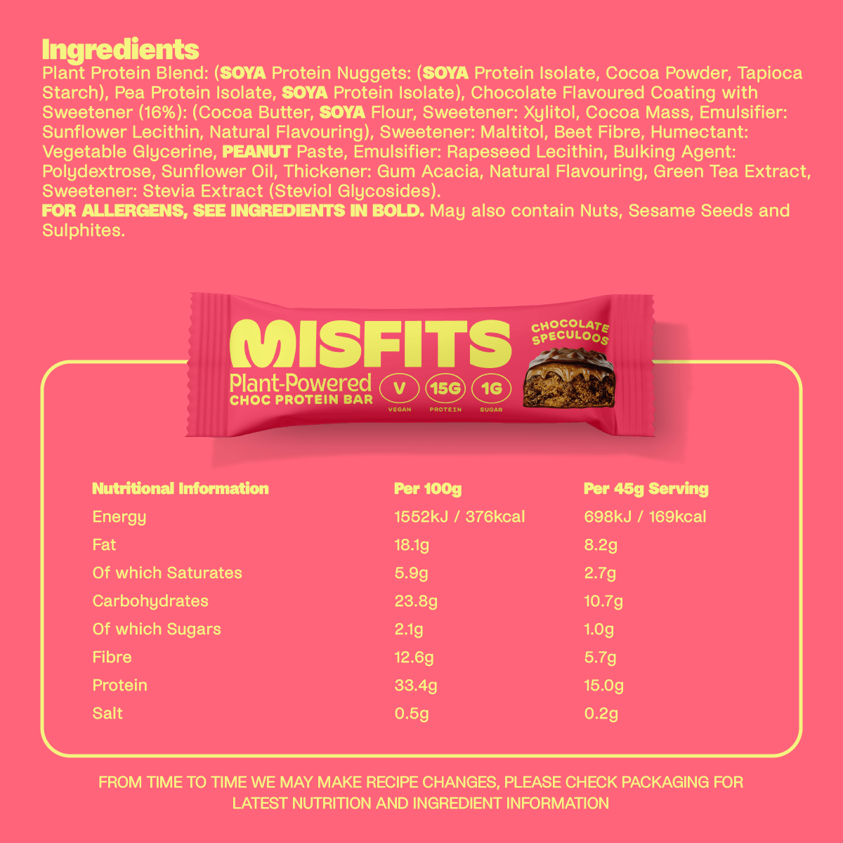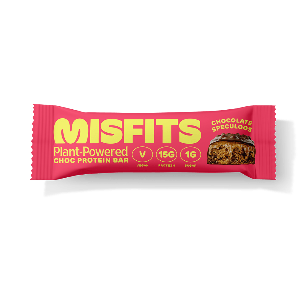 Misfits Vegan Chocolate Speculoos Protein Bars are a tasty treat designed for those following a vegan lifestyle. Here's a breakdown of their key features:
