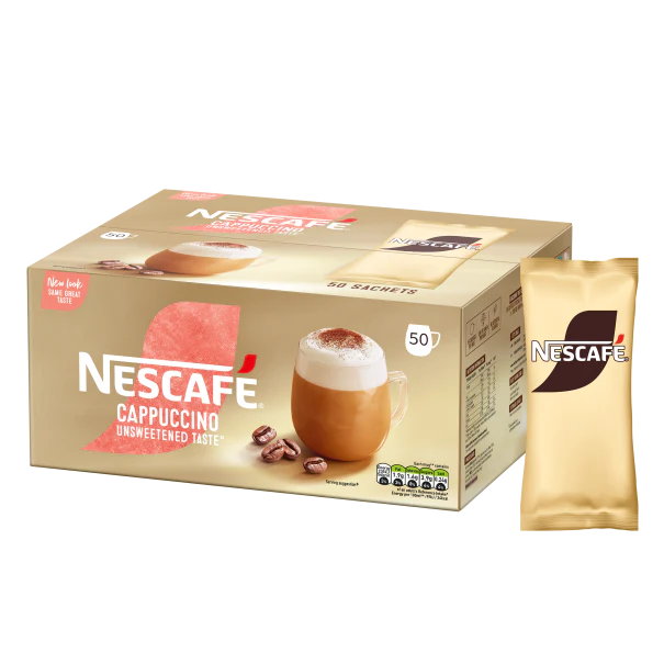 NESCAFÉ Cappuccino Unsweetened Taste* sticks are a delicious coffee shop-style drink for those who prefer a less sweet taste. Enjoy an expertly prepared cappuccino which is made using a blend of roasted coffee beans and fresh milk from British dairy farmers.