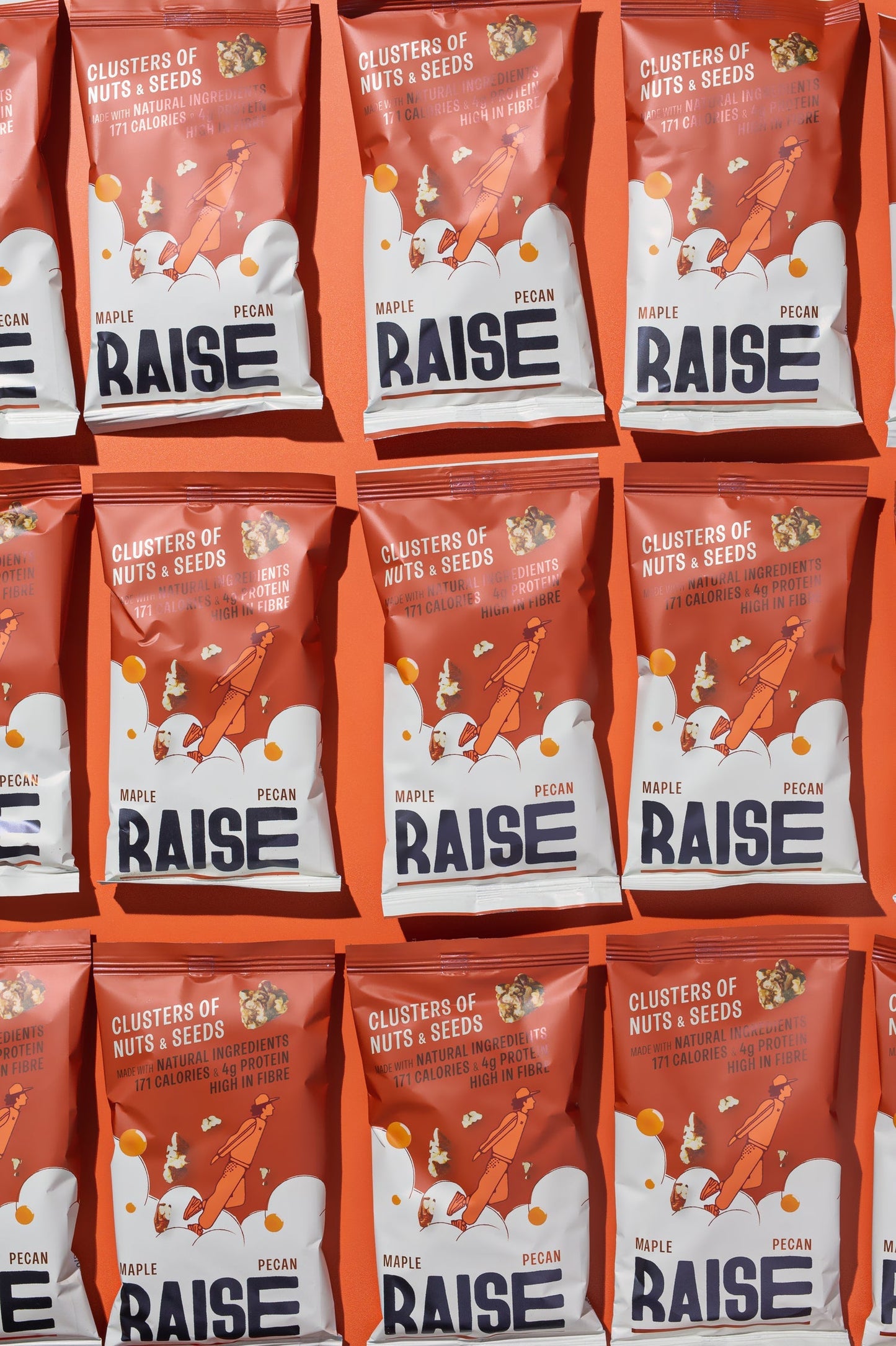 Raise Snacks Maple & Pecan Clusters are delicious bites of roasted nuts and seeds, bundled into a handy pouch to keep you going day and night. Made with almonds, cashews, pecans, pumpkin and sunflower seeds, they’re flavoured with a salted maple twist for the perfect balance of sweet and savoury. With under 5g of sugar, over 4g of protein and high fibre, they’re a better for you snack without compromising on taste. Supplied in a pack of 12, ideal for lunchboxes, on the go snacking, or desk drawers.