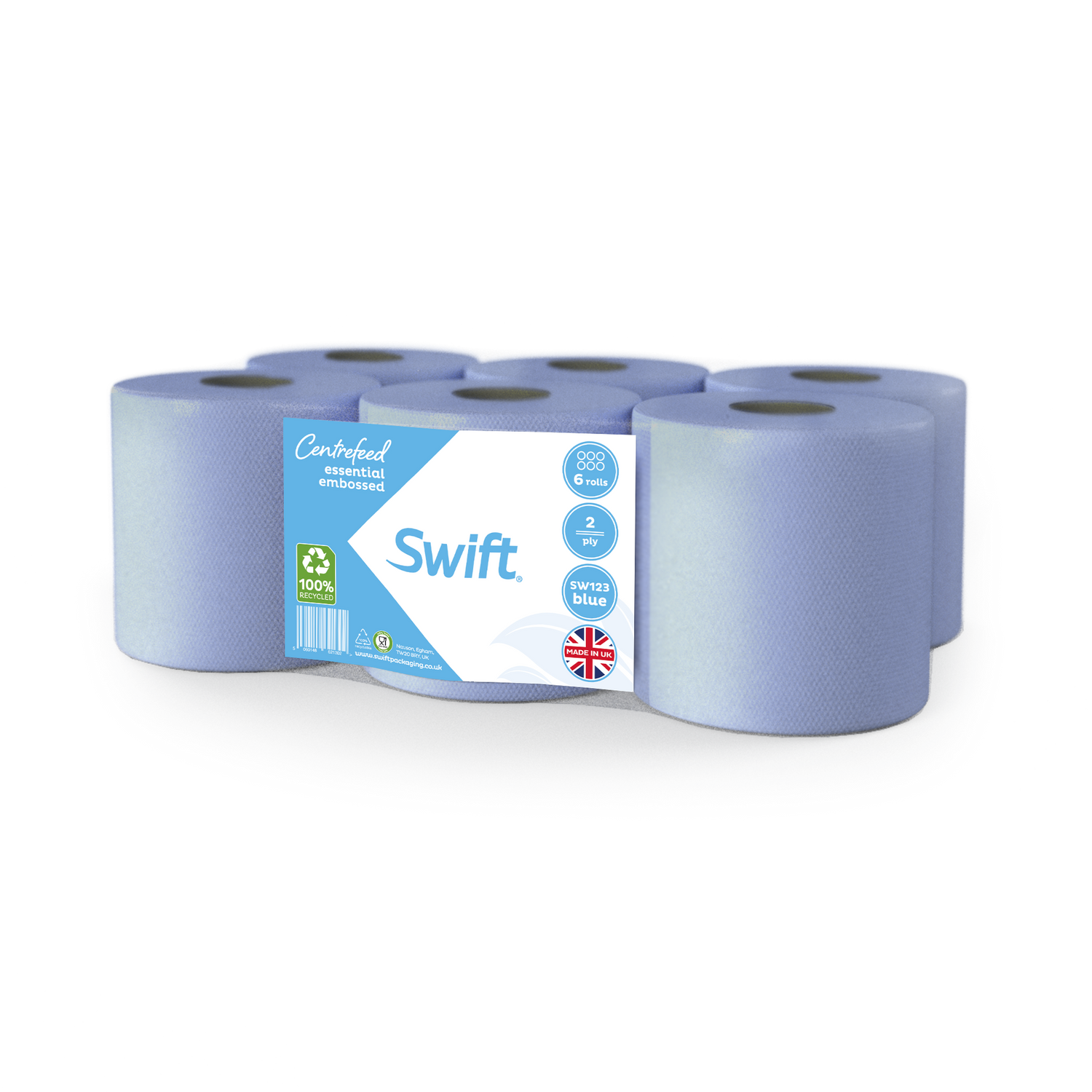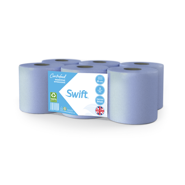 Swift Blue Economy Embossed 2 Ply Essential Centrefeed Paper Rolls Blue (Pack of 6)